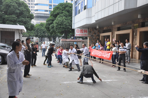 为了倡导团体合作精神,增强职工的凝聚力、归属感。我院10月23日组织了拔河比赛,以工会小组为单位分成4队共32人参加比赛。